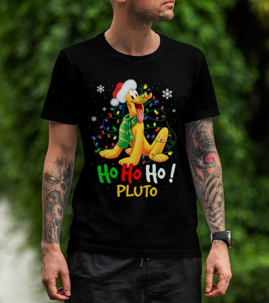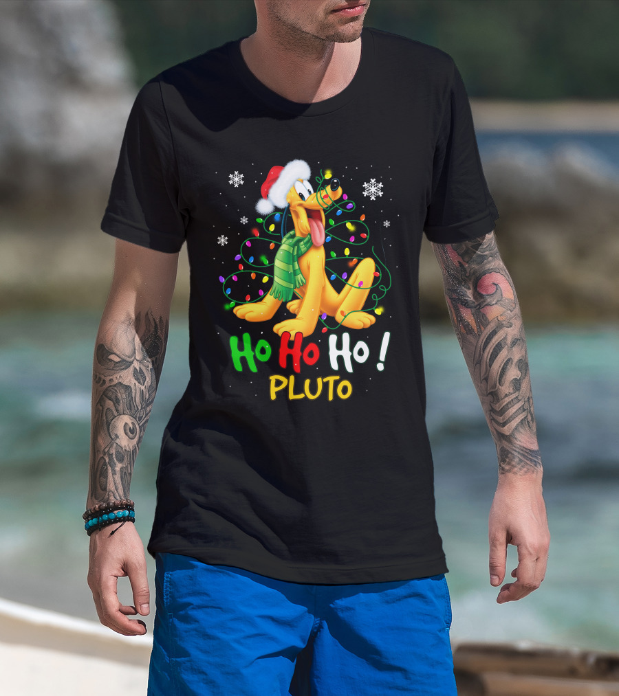 Pluto Ho Ho Ho Christmas Lights Santa Hat T-Shirt