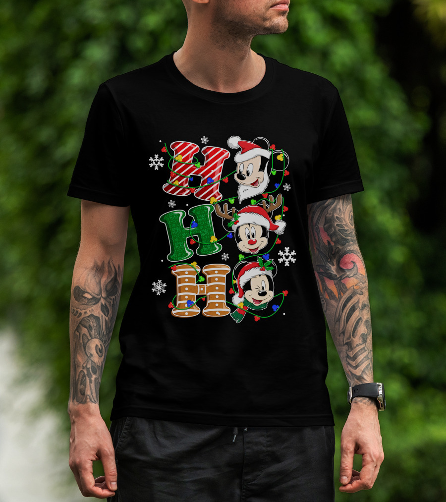 Mickey Mouse Hohoho Christmas Santa Reindeer Lights T-Shirt