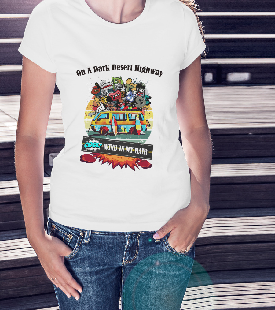 On A Dark Desert Highway Cool Wind In My Hair Retro Bus Cartoon T-Shirt