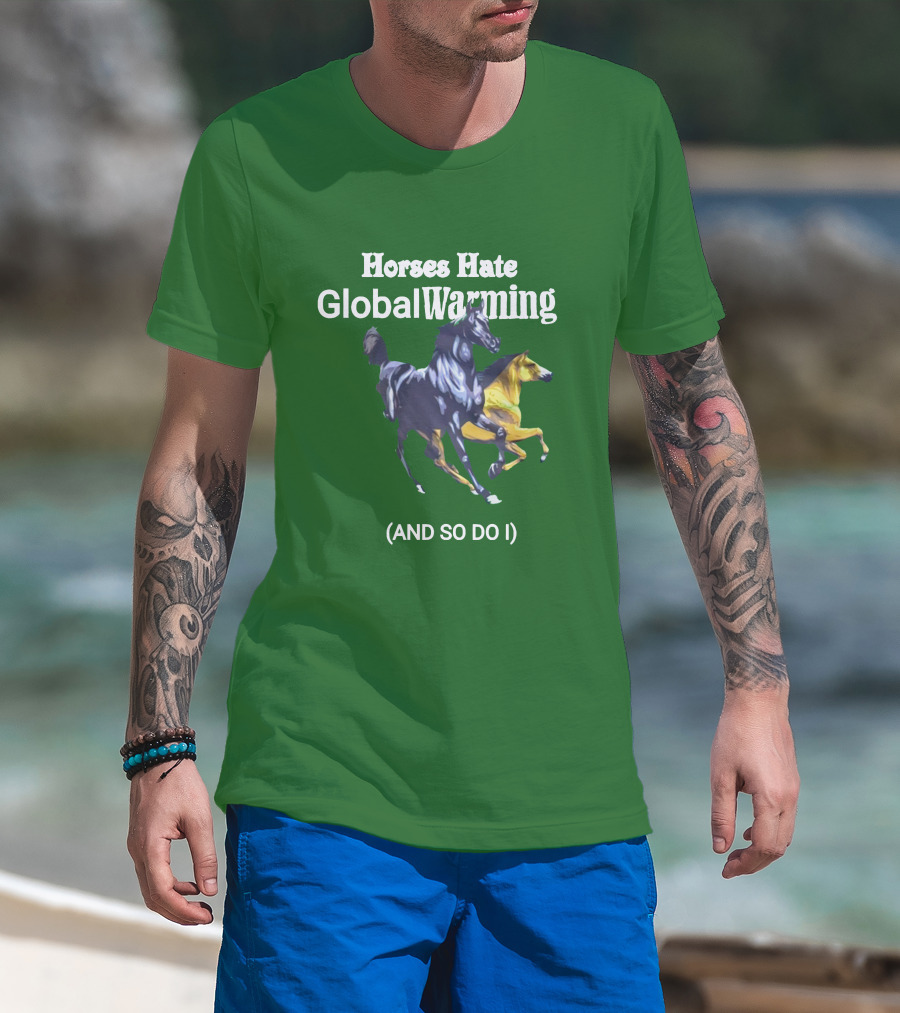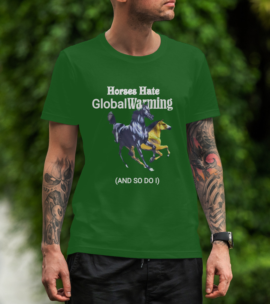 The Horses Hate Global Warming And So Do I T-shirt is designed for everyday wear and a consistent fit. Fabric is pre-shrunk ring-spun cotton with durable stitching. See the size chart below for exact measurements.