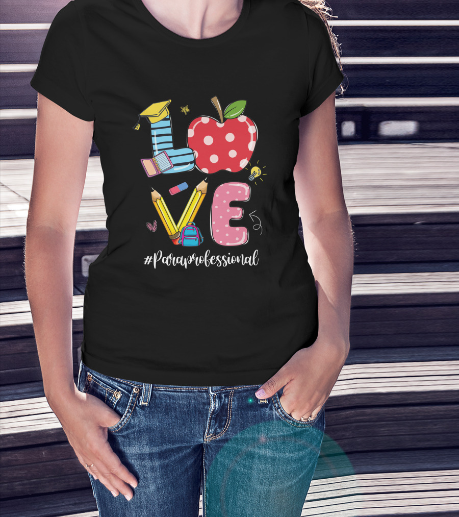 Love #Paraprofessional Apple Pencil School Supplies T-Shirt