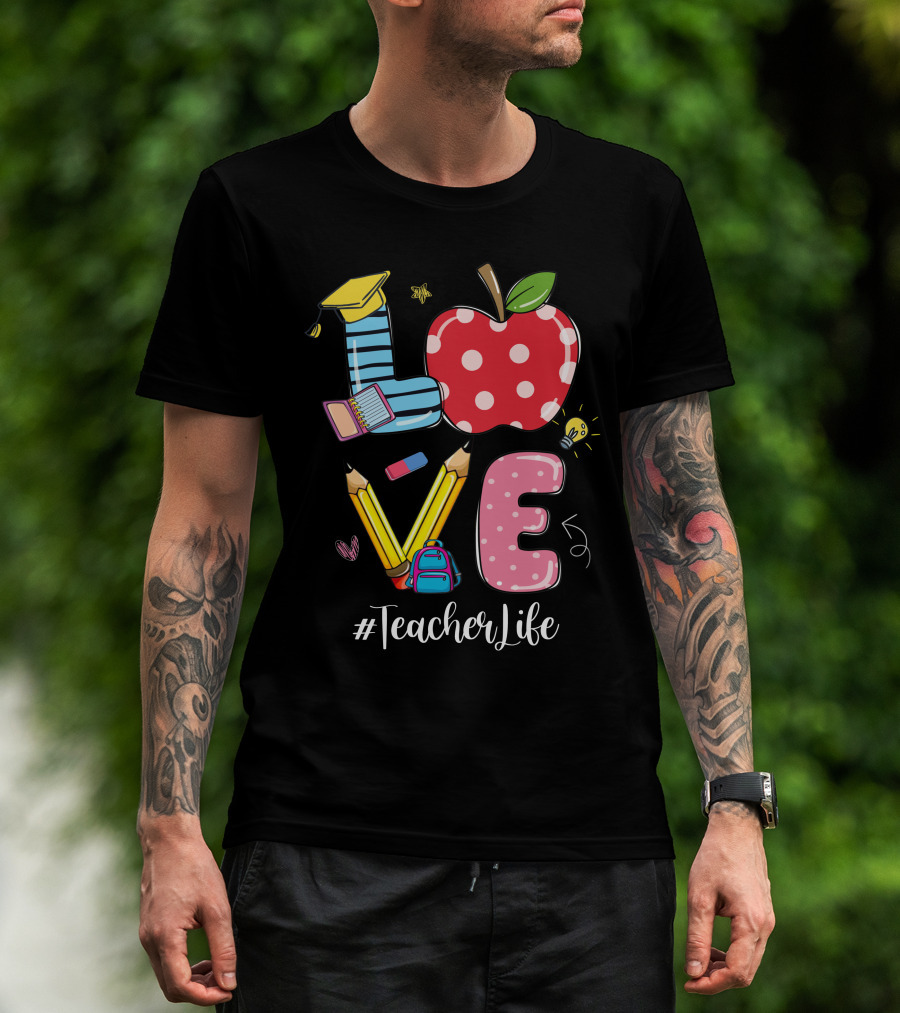 LOVE Apple Pencil Graduation Cap Teacher Life T-Shirt