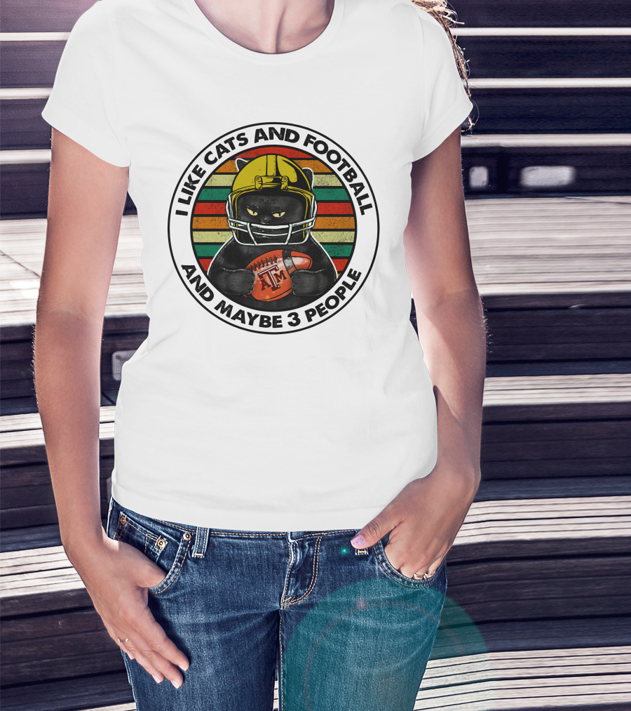 I LIKE CATS AND FOOTBALL AND MAYBE 3 PEOPLE AM T-Shirt