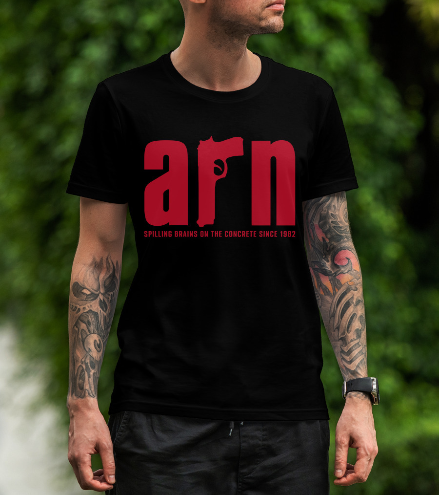 The Arn Anderson Spilling Brains on the Concrete Since 1982 Sopranos Gimmicks T-shirt is designed for everyday wear and a consistent fit. Fabric is pre-shrunk ring-spun cotton with durable stitching. See the size chart below for exact measurements.