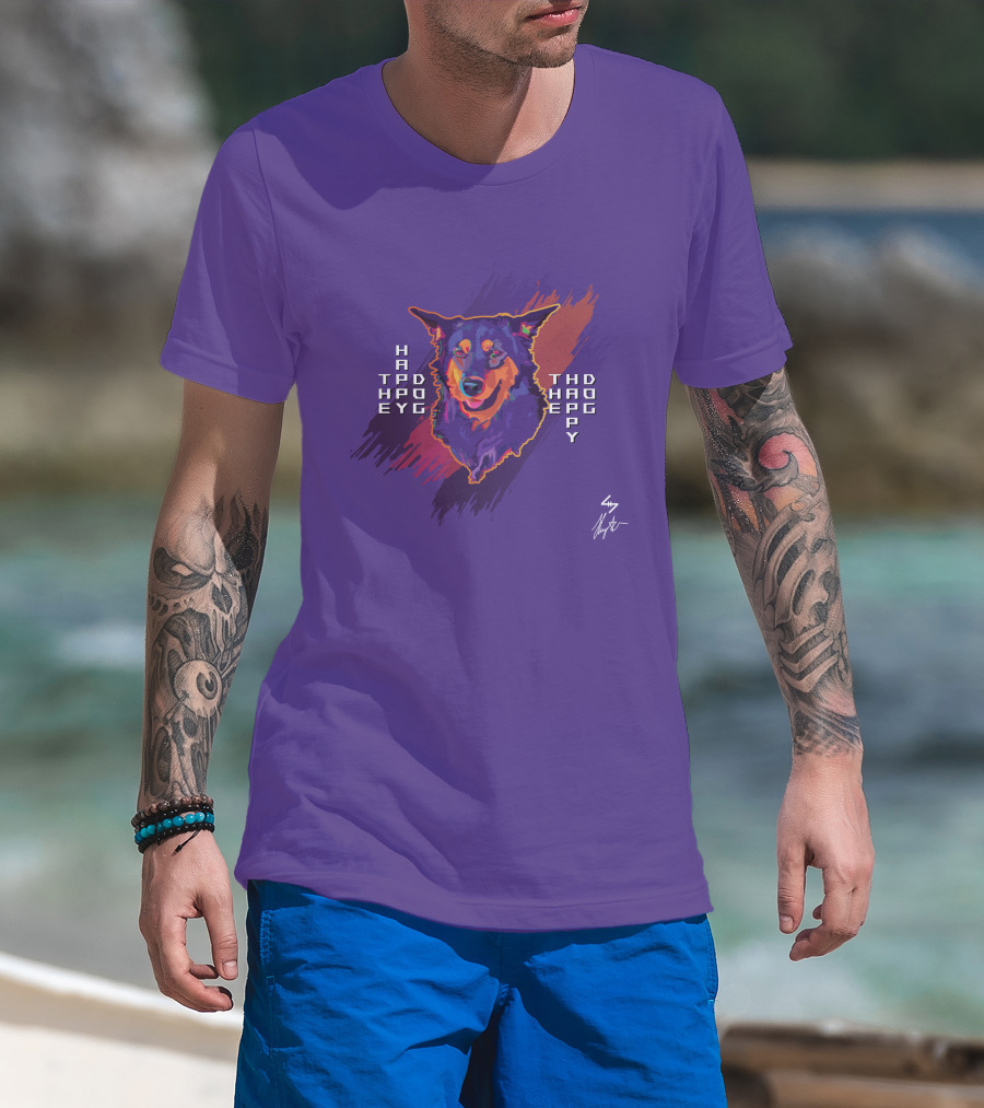 The HAPPO TAPD EYO THD HAOP EPY Happy Dog T-shirt is designed for everyday wear and a consistent fit. Fabric is pre-shrunk ring-spun cotton with durable stitching. See the size chart below for exact measurements.
