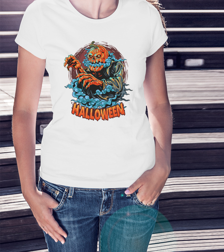 The Halloween Pumpkin-Headed Zombie with Ghoulish Aura T-shirt is designed for everyday wear and a consistent fit. Fabric is pre-shrunk ring-spun cotton with durable stitching. See the size chart below for exact measurements.