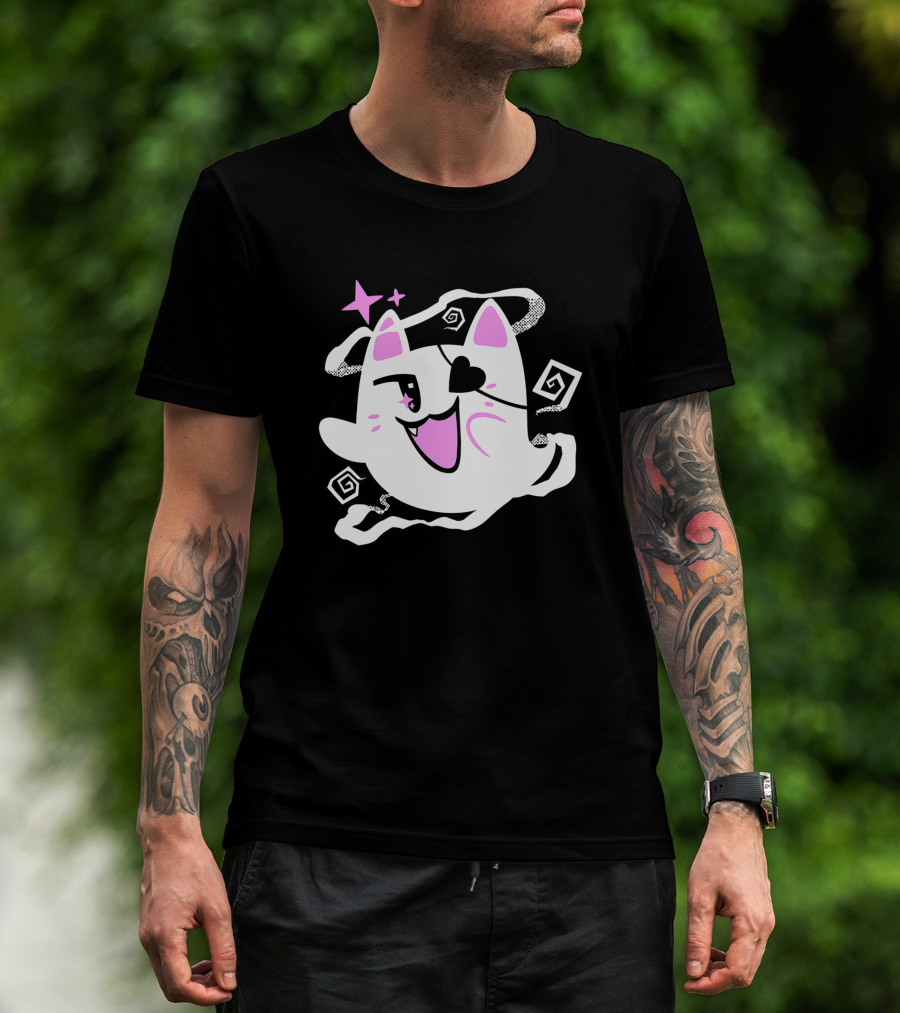 The Shark Robot Merch Halloween Goro Ghost Cat with Eye Patch and Stars T-shirt is designed for everyday wear and a consistent fit. Fabric is pre-shrunk ring-spun cotton with durable stitching. See the size chart below for exact measurements.