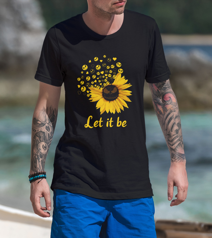 Jack Skellington Face Sunflower Let It Be Hearts Yellow Smiles T-Shirt