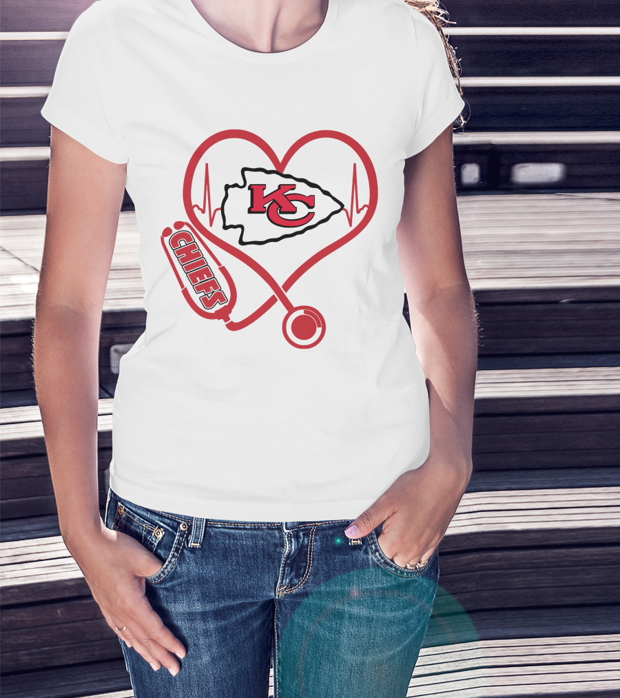 Nurse Love Kansas City Chiefs Heart Stethoscope T-Shirt