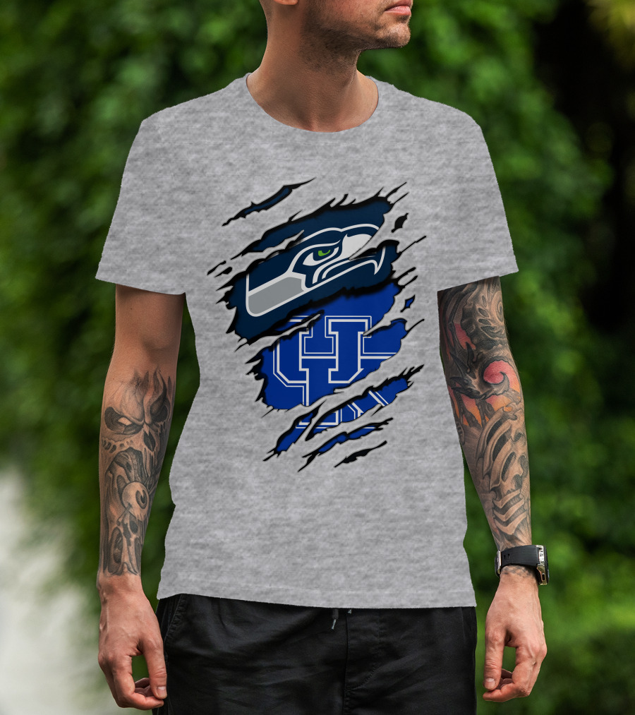 The Seahawks UK Logo Fusion T-shirt is designed for everyday wear and a consistent fit. Fabric is pre-shrunk ring-spun cotton with durable stitching. See the size chart below for exact measurements.