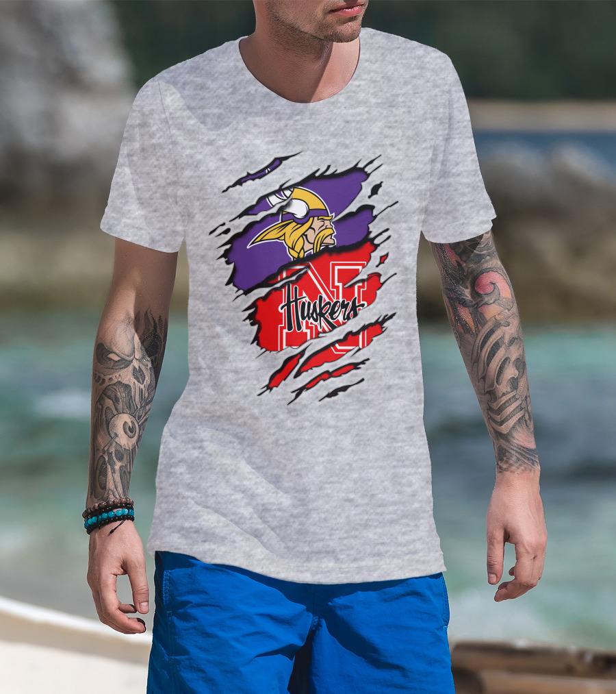 Vikings Huskers Ripped Logo Blend T-Shirt