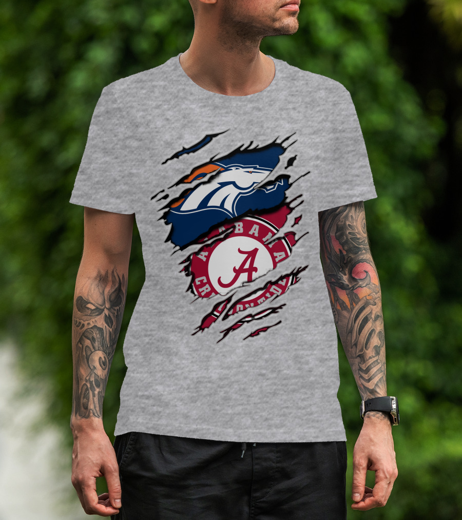 Alabama Crimson Tide Denver Broncos Logo Fusion T-Shirt