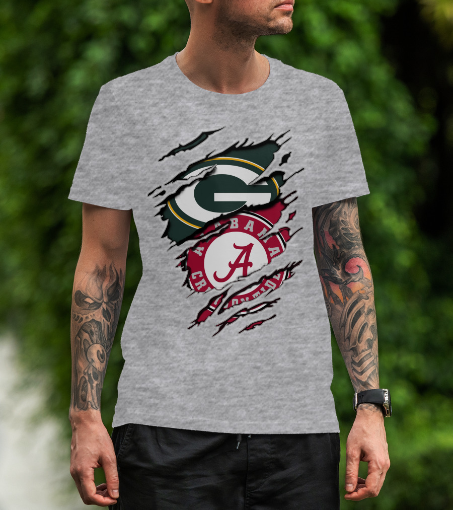 Alabama Crimson Tide Green Bay Packers Rip Effect T-Shirt