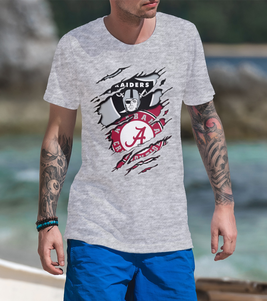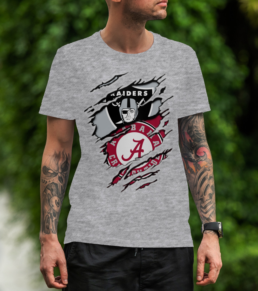 Alabama Crimson Tide Raiders Logo Mashup With Helmeted Mascot T-Shirt