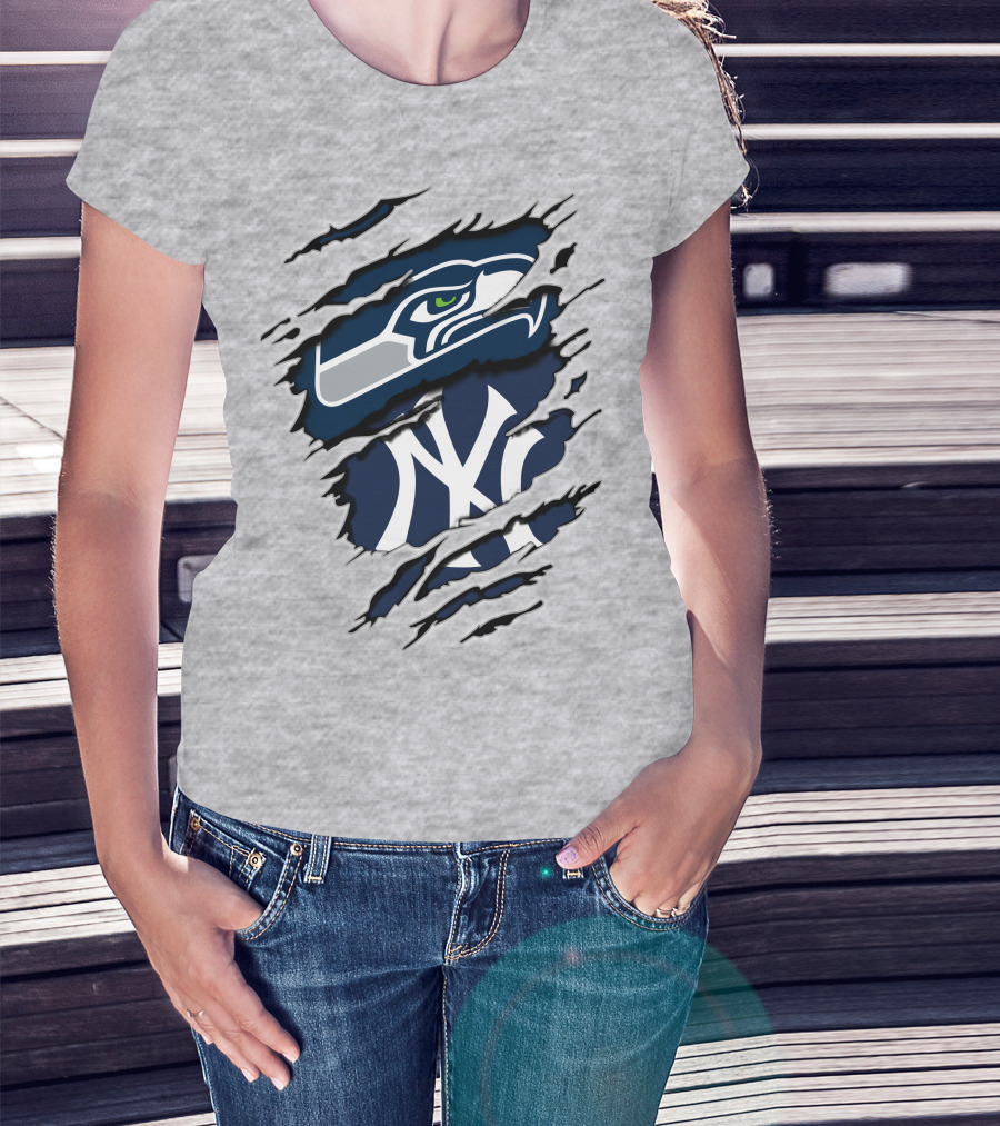 The Seahawks Yankees Logo Fusion T-shirt is designed for everyday wear and a consistent fit. Fabric is pre-shrunk ring-spun cotton with durable stitching. See the size chart below for exact measurements.