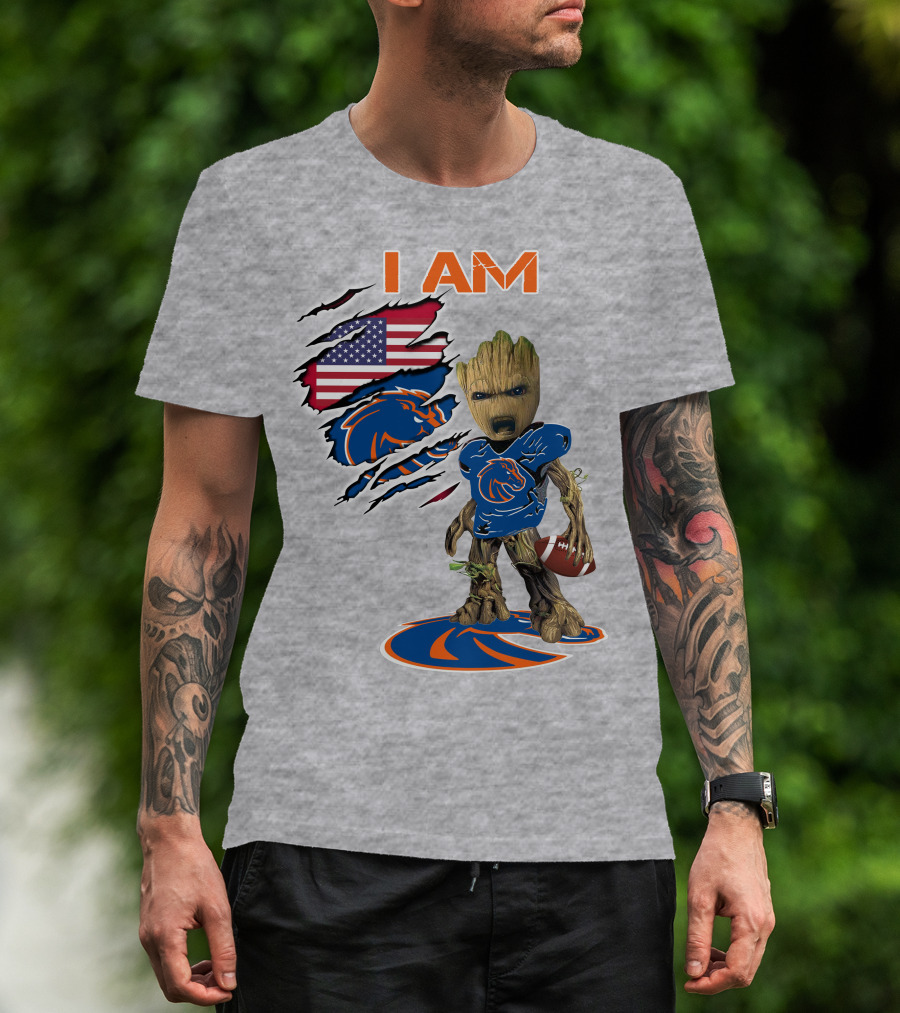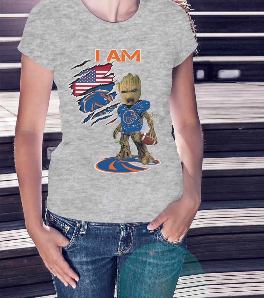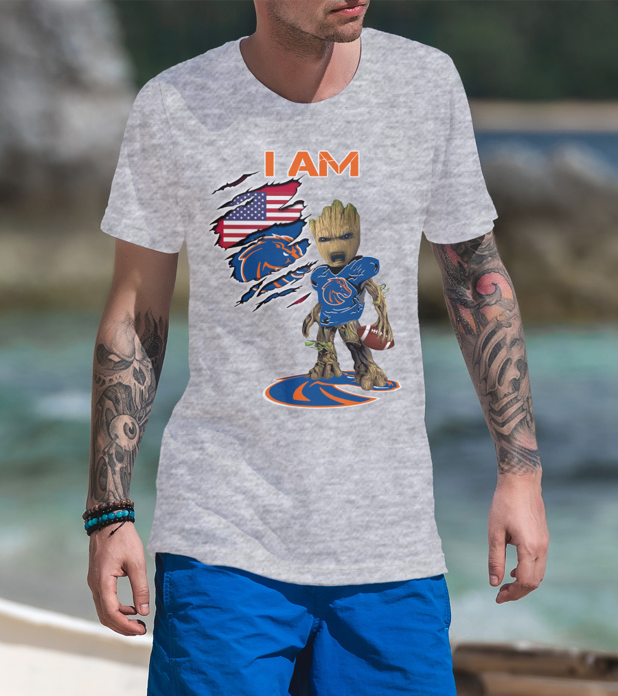 Boise State Broncos Groot I Am USA Flag Football T-Shirt