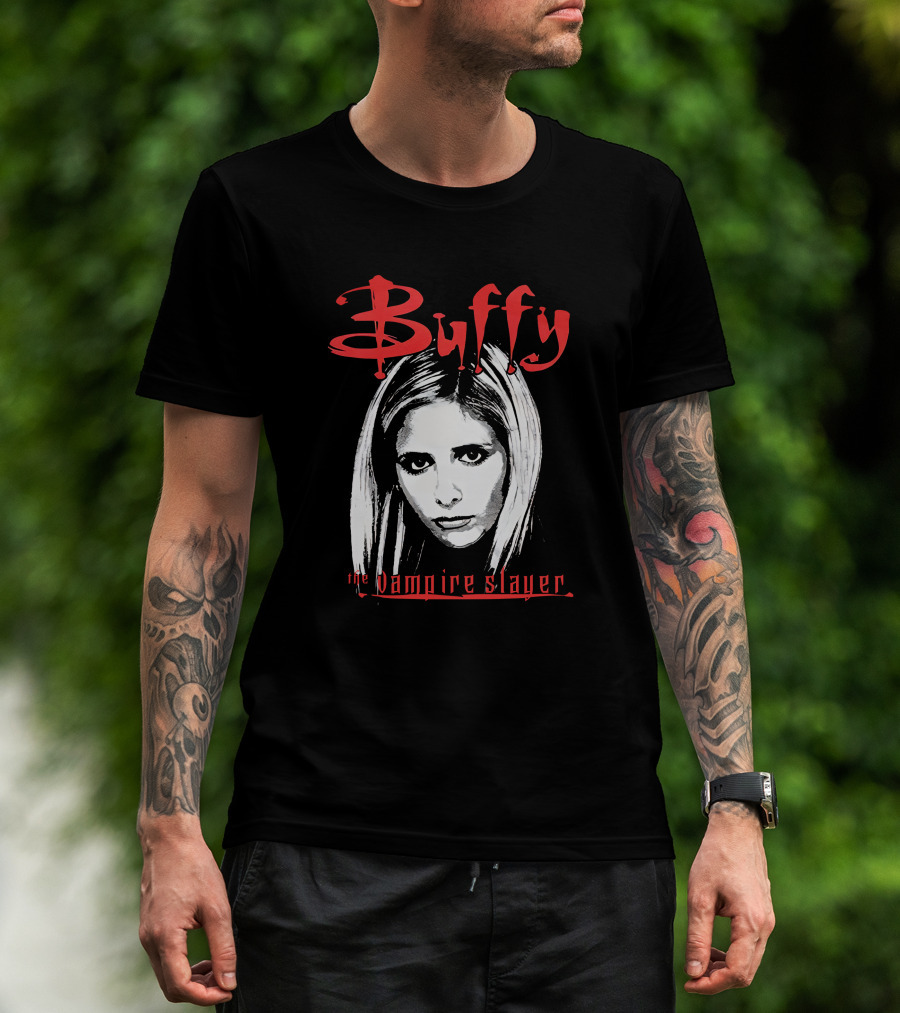 The Buffy The Vampire Slayer Buffy Vampire Slayer Face Iconic Show T-shirt is designed for everyday wear and a consistent fit. Fabric is pre-shrunk ring-spun cotton with durable stitching. See the size chart below for exact measurements.