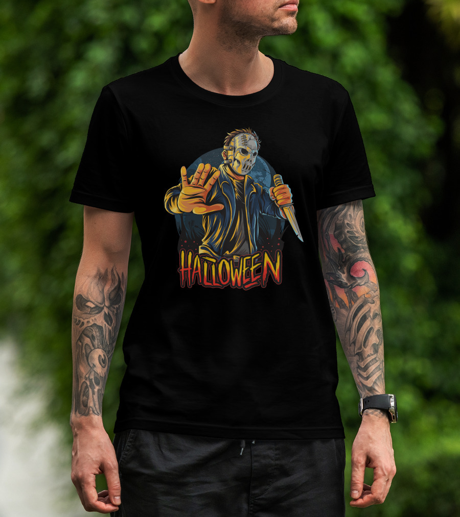 The Halloween Horror Mask Knife Threat T-shirt is designed for everyday wear and a consistent fit. Fabric is pre-shrunk ring-spun cotton with durable stitching. See the size chart below for exact measurements.