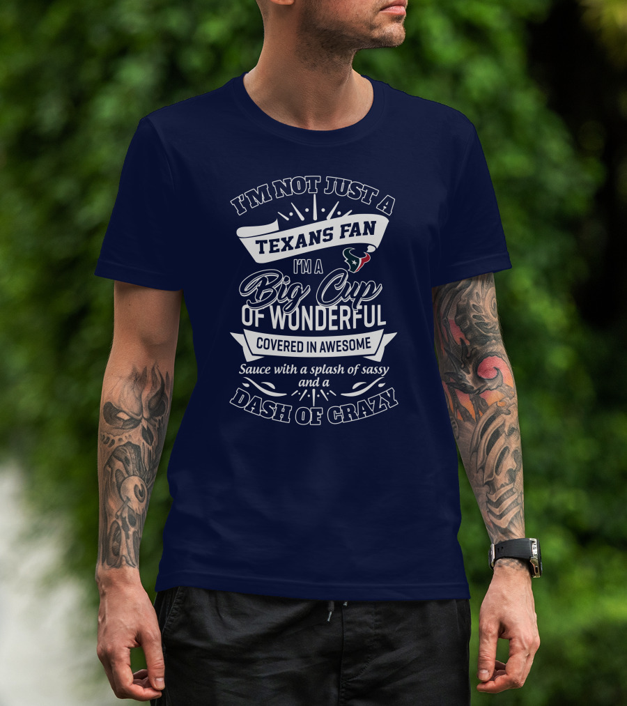 I'm Not Just A Texans Fan I'm A Big Cup Of Wonderful Covered In Awesome Sauce With A Splash Of Sassy And A Dash Of Crazy T-Shirt