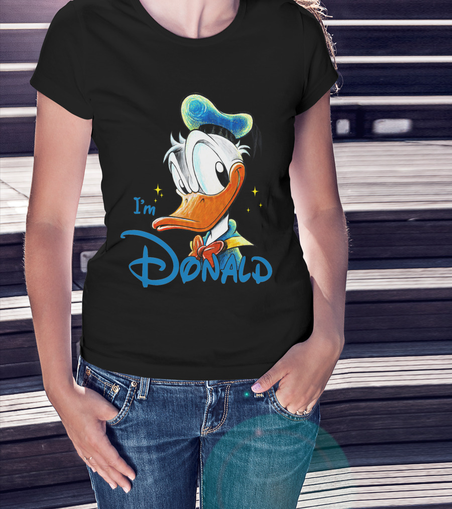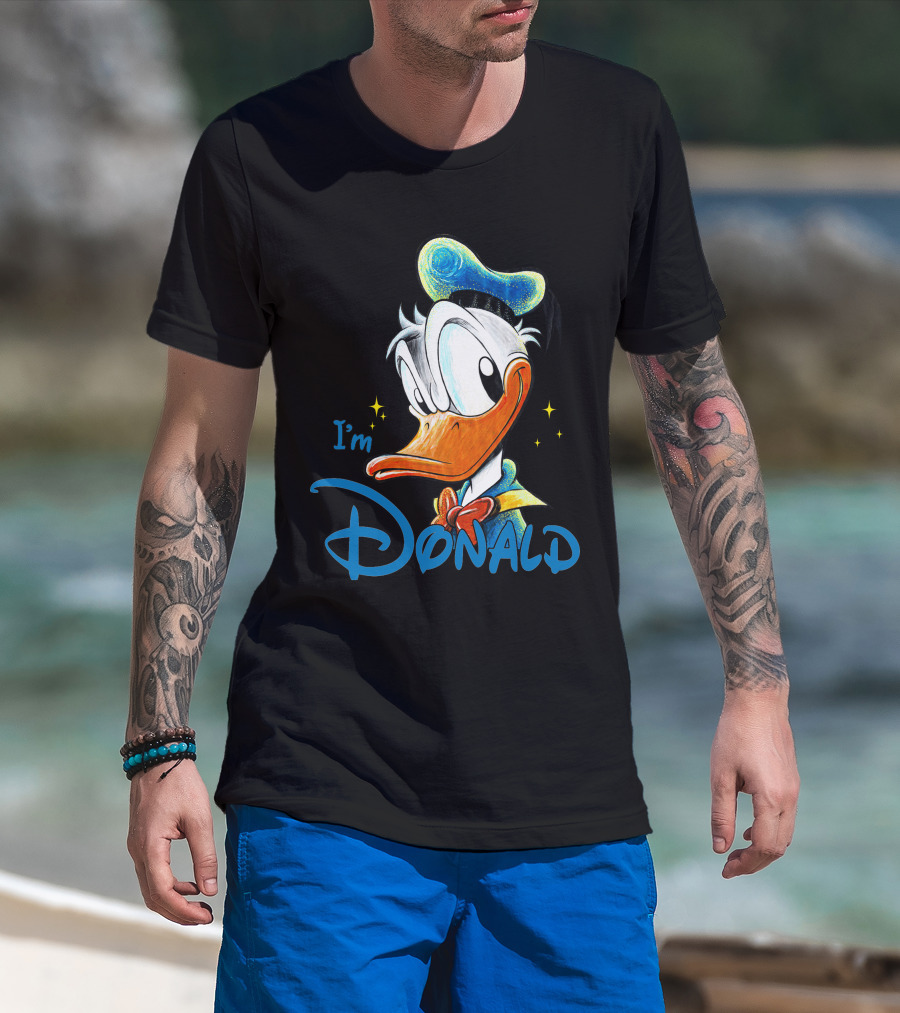The I'm Donald Duck Disney Character T-shirt is designed for everyday wear and a consistent fit. Fabric is pre-shrunk ring-spun cotton with durable stitching. See the size chart below for exact measurements.
