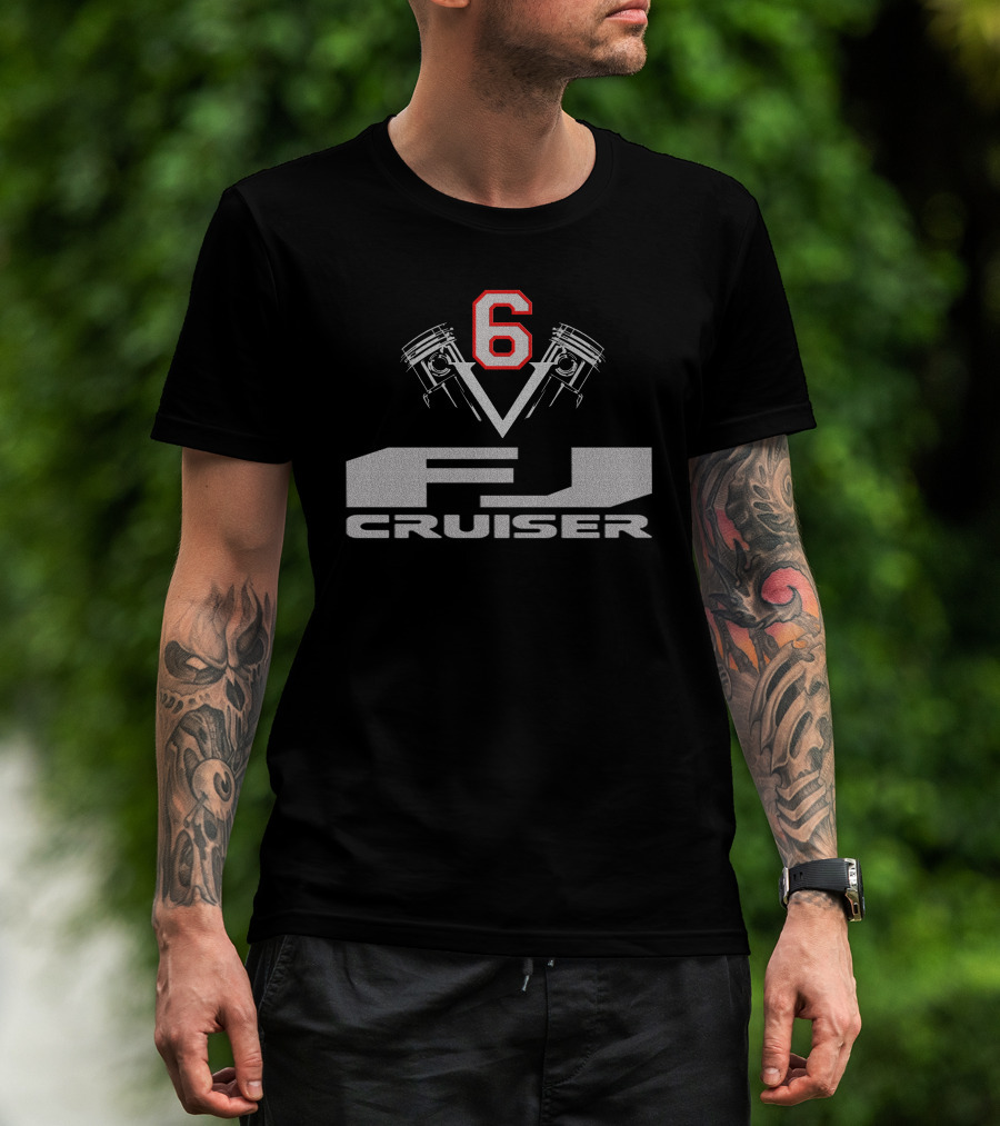 The FJ CRUISER V6 Piston Engine T-shirt is designed for everyday wear and a consistent fit. Fabric is pre-shrunk ring-spun cotton with durable stitching. See the size chart below for exact measurements.
