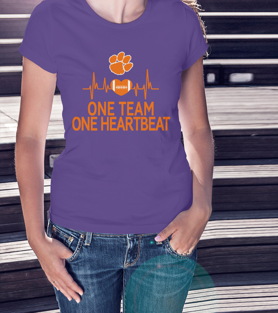 Clemson Tigers One Team One Heartbeat Football Paw Print Heartbeat T-Shirt