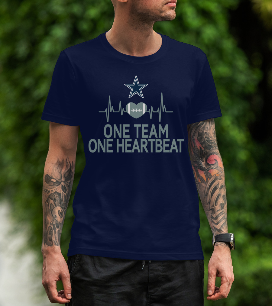 Dallas Cowboys Star Heartbeat Football One Team One Heartbeat T-Shirt