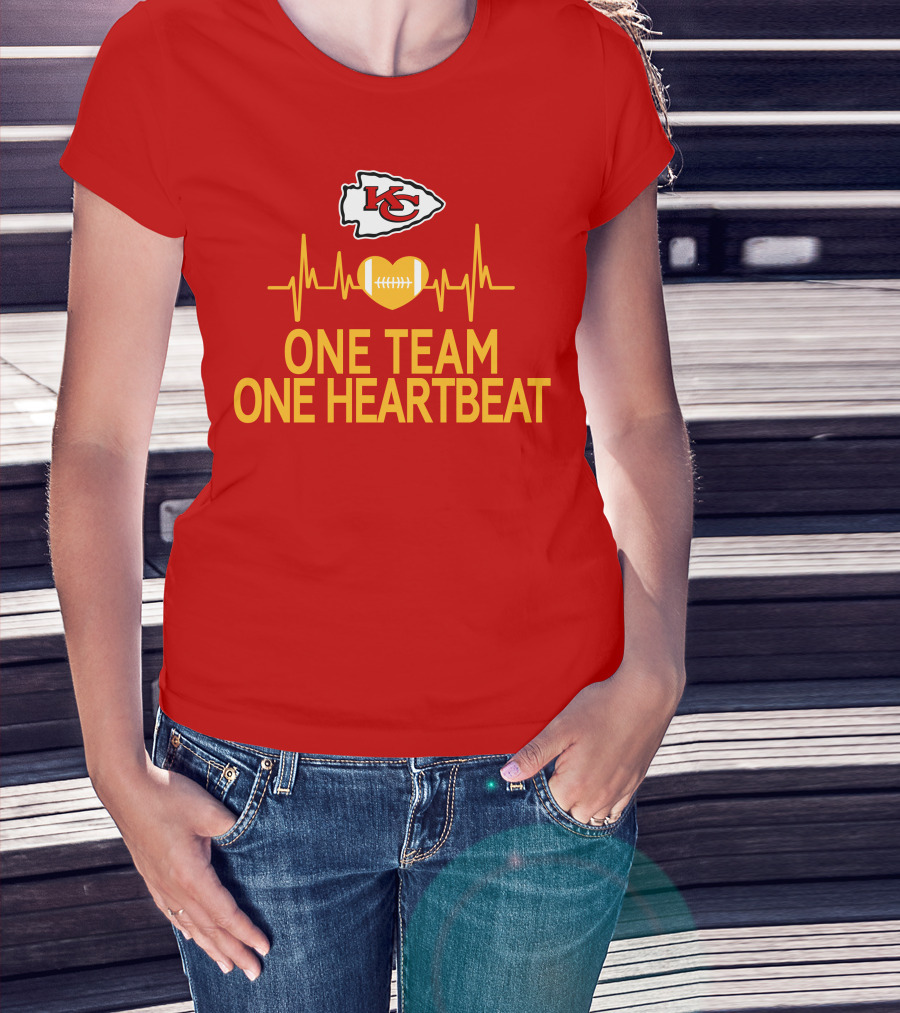 Kansas City Chiefs KC Logo Heartbeat Football One Team One Heartbeat T-Shirt