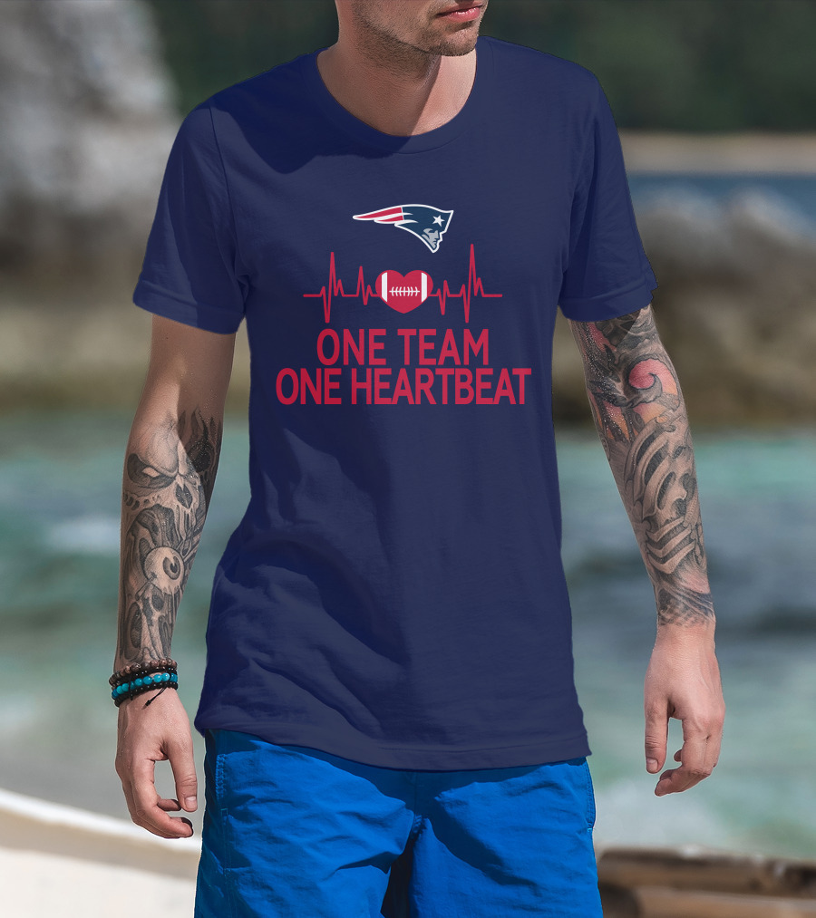 New England Patriots Logo One Team One Heartbeat Football Heartbeat Line T-Shirt