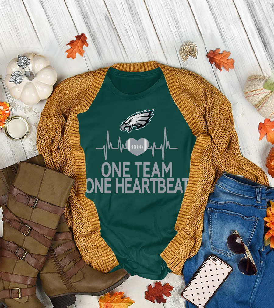 Philadelphia Eagles One Team One Heartbeat Football Logo Heartbeat T-Shirt