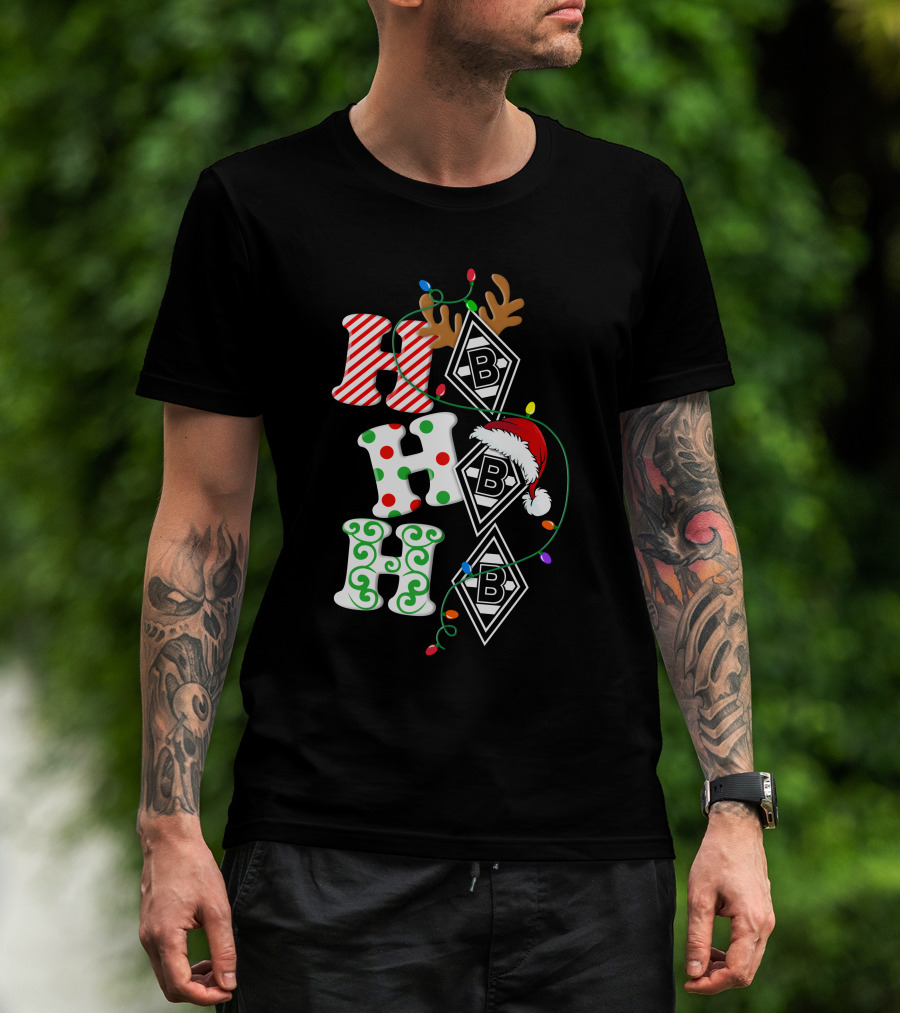 Borussia Mönchengladbach HoHoHo Christmas Reindeer Santa Lights T-Shirt