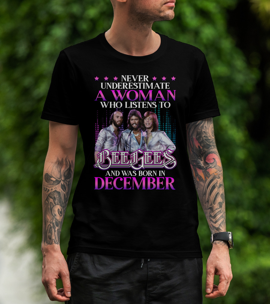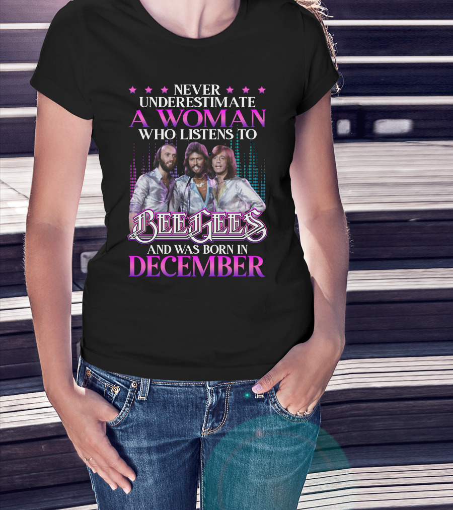 Never Underestimate A Woman Who Listens To Bee Gees And Was Born In December T-Shirt