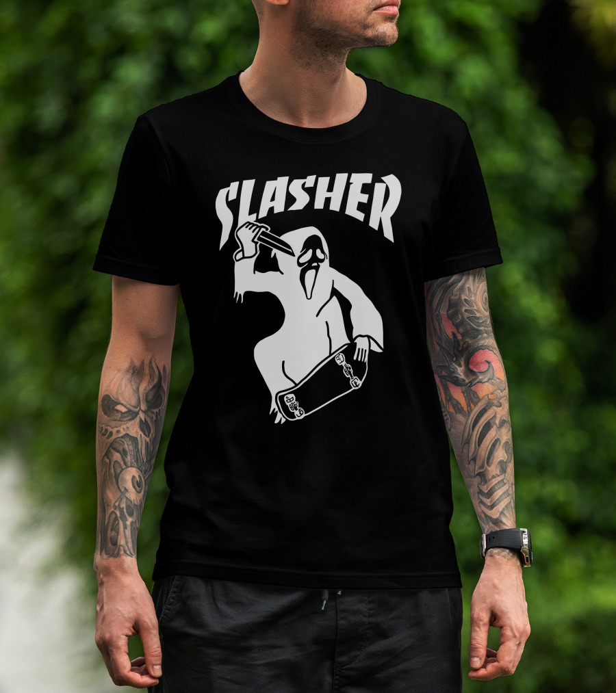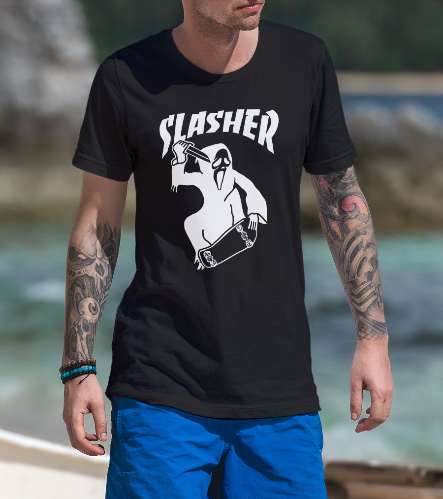 Slasher Skateboard Ghost Mask Knife T-Shirt