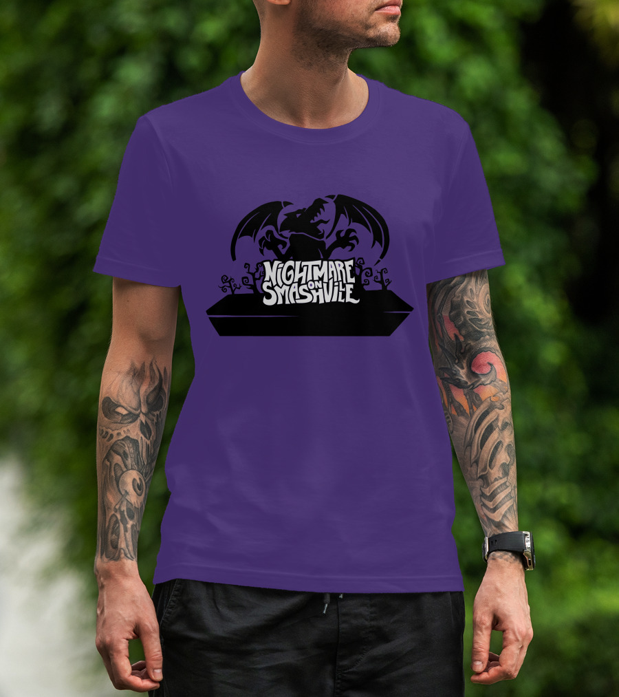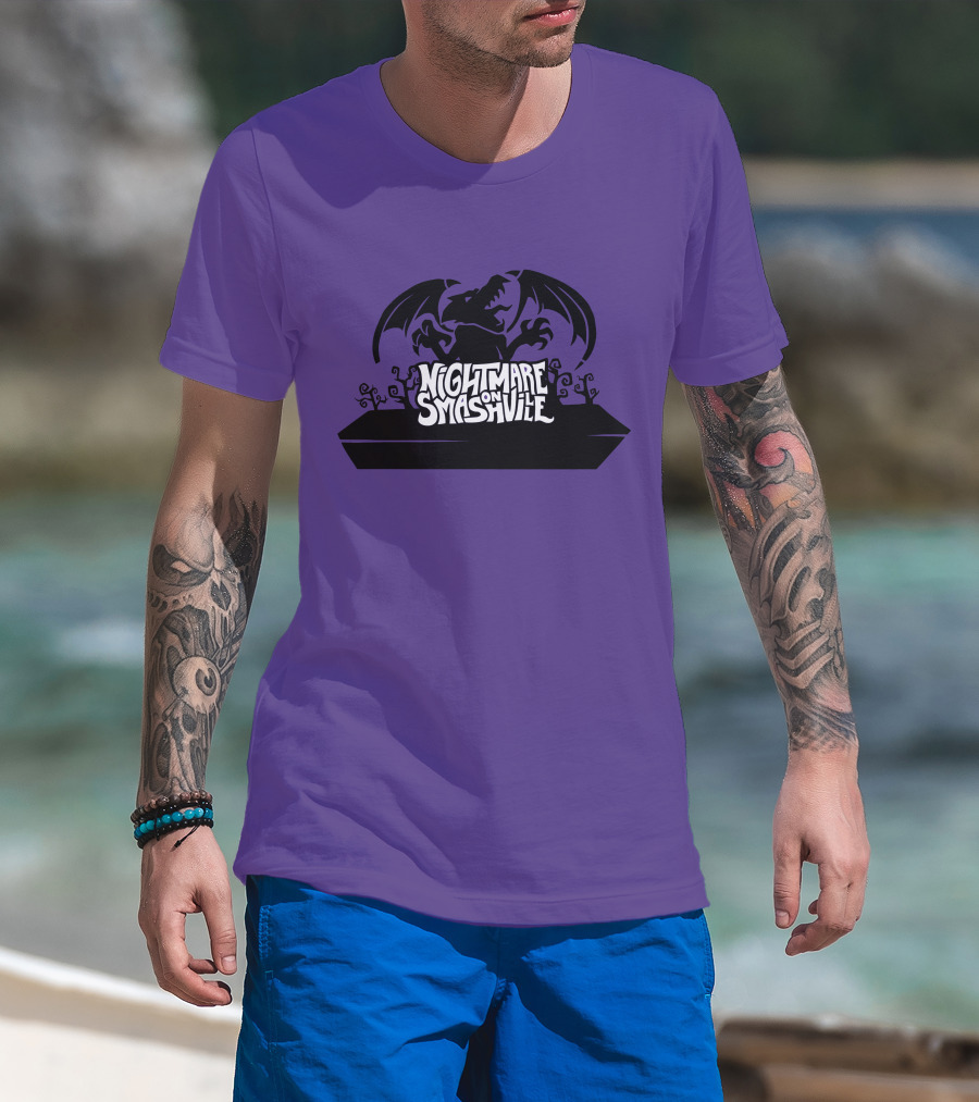 Nightmare On Smashville Purple Design Featuring Dragon And Tiny Syd Halloween T-Shirt