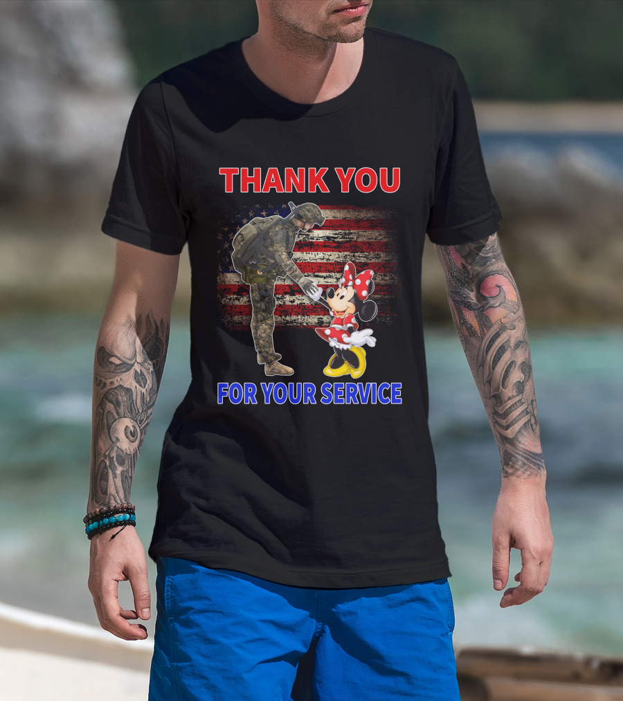 Thank You For Your Service Soldier And Minnie Mouse With American Flag Background T-Shirt