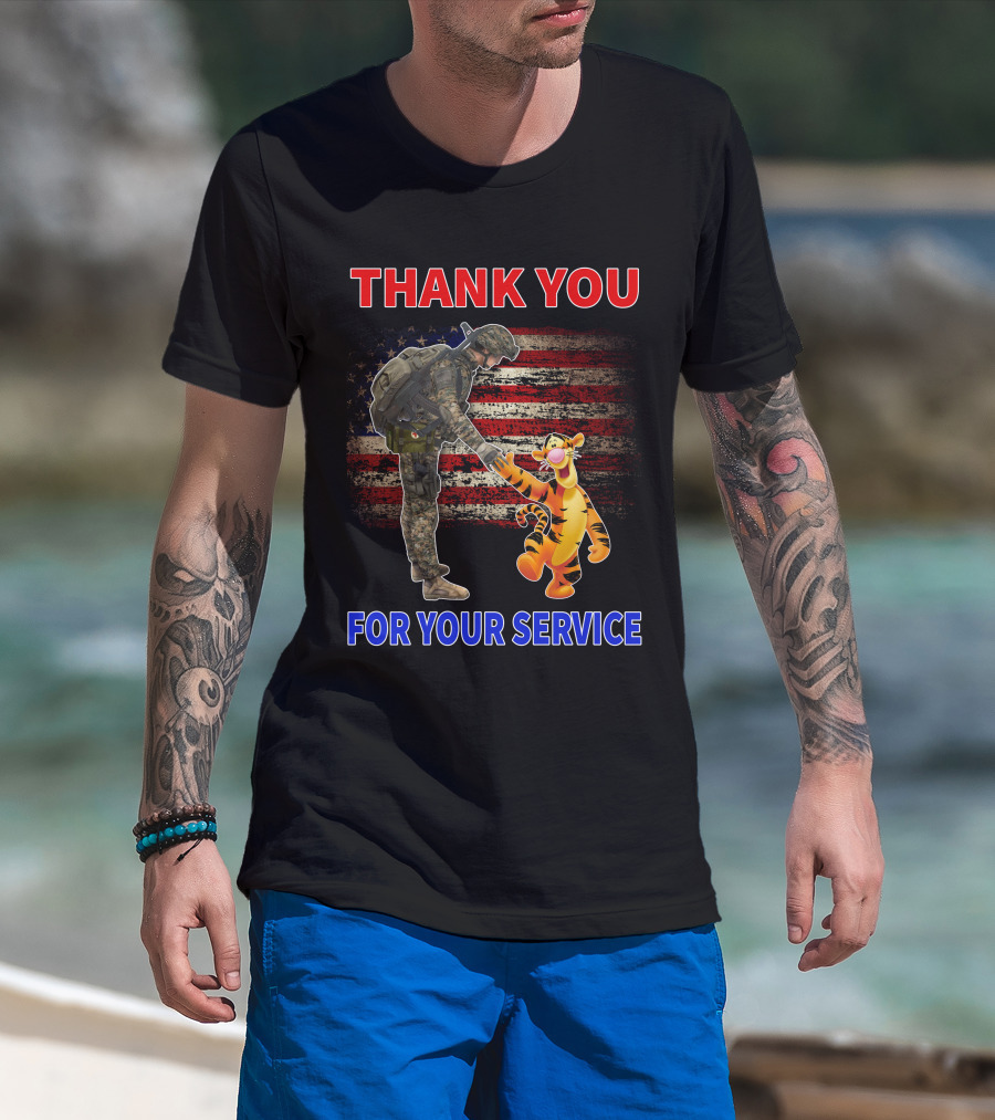 Thank You Tigger For Your Service Military Soldier American Flag T-Shirt