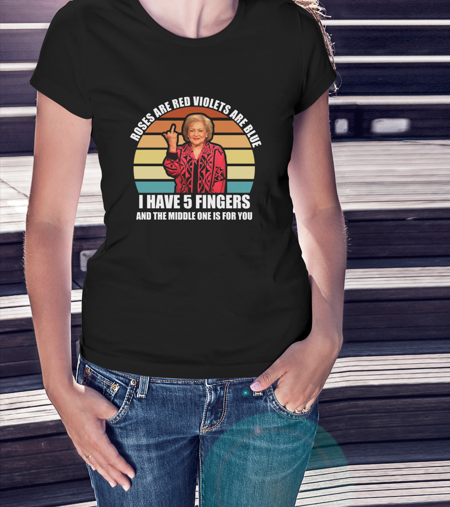 Roses Are Red Violets Are Blue I Have 5 Fingers And The Middle One Is For You Betty White T-Shirt