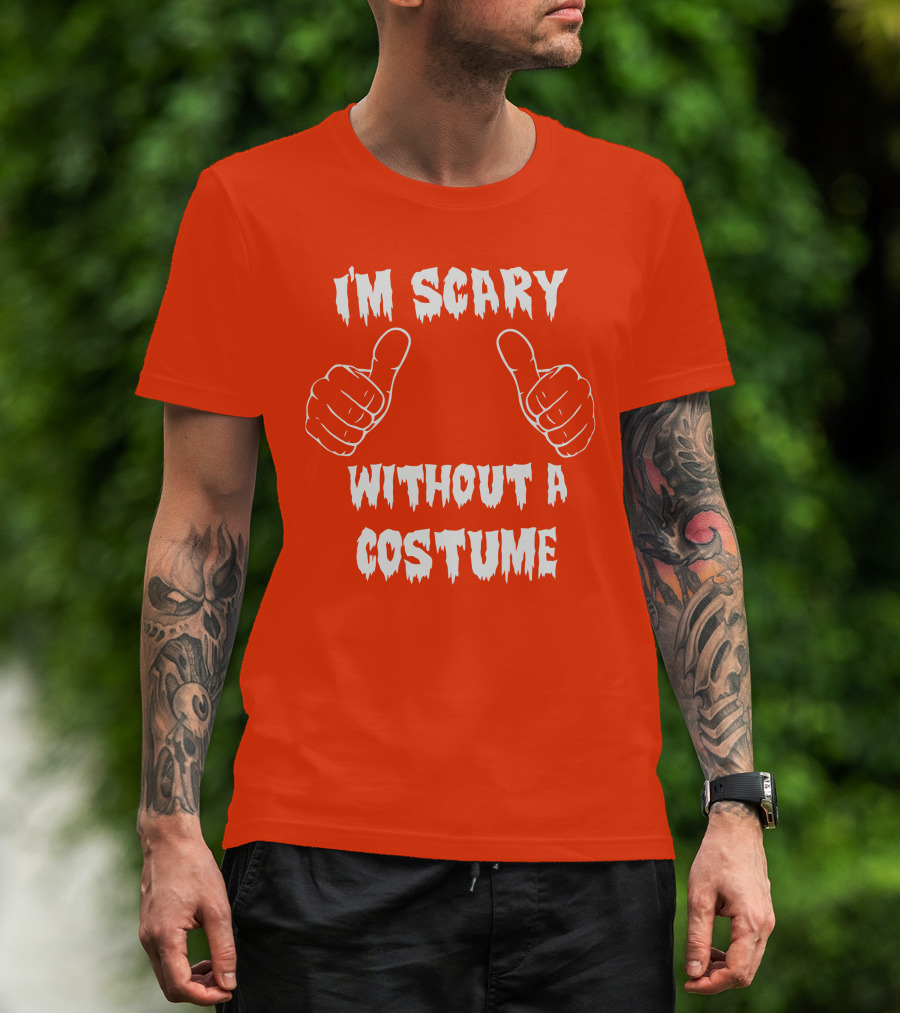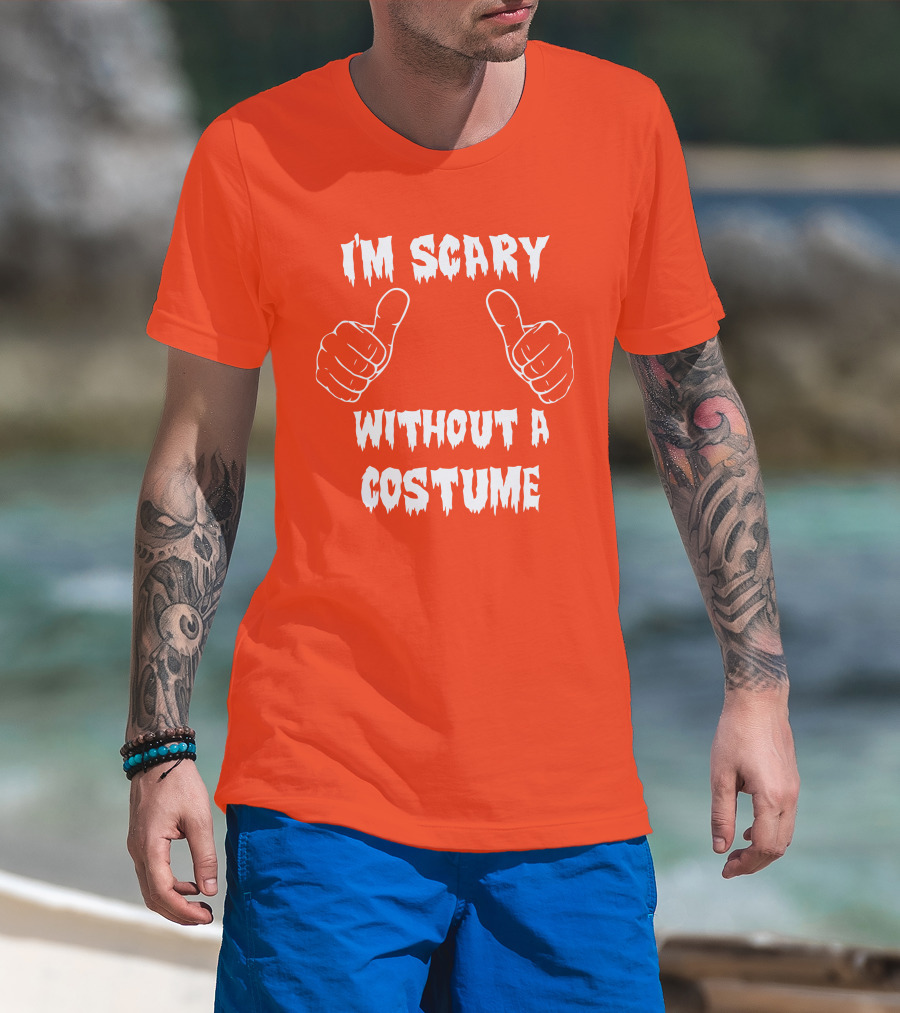 The I'm Scary Without A Costume Thumbs Up Sinister Sidney T-shirt is designed for everyday wear and a consistent fit. Fabric is pre-shrunk ring-spun cotton with durable stitching. See the size chart below for exact measurements.