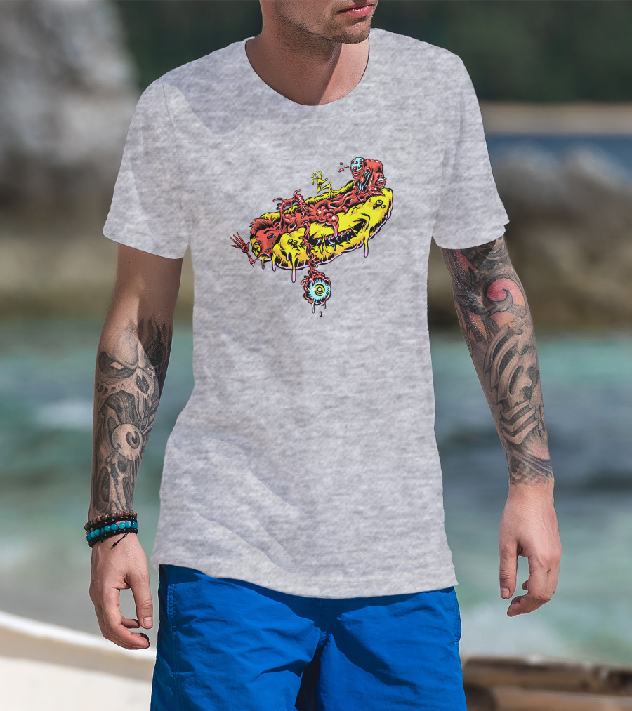 The Drew Gooden Merch Hot Dog Surreal Monster Melt Dripping Eyeball T-shirt is designed for everyday wear and a consistent fit. Fabric is pre-shrunk ring-spun cotton with durable stitching. See the size chart below for exact measurements.