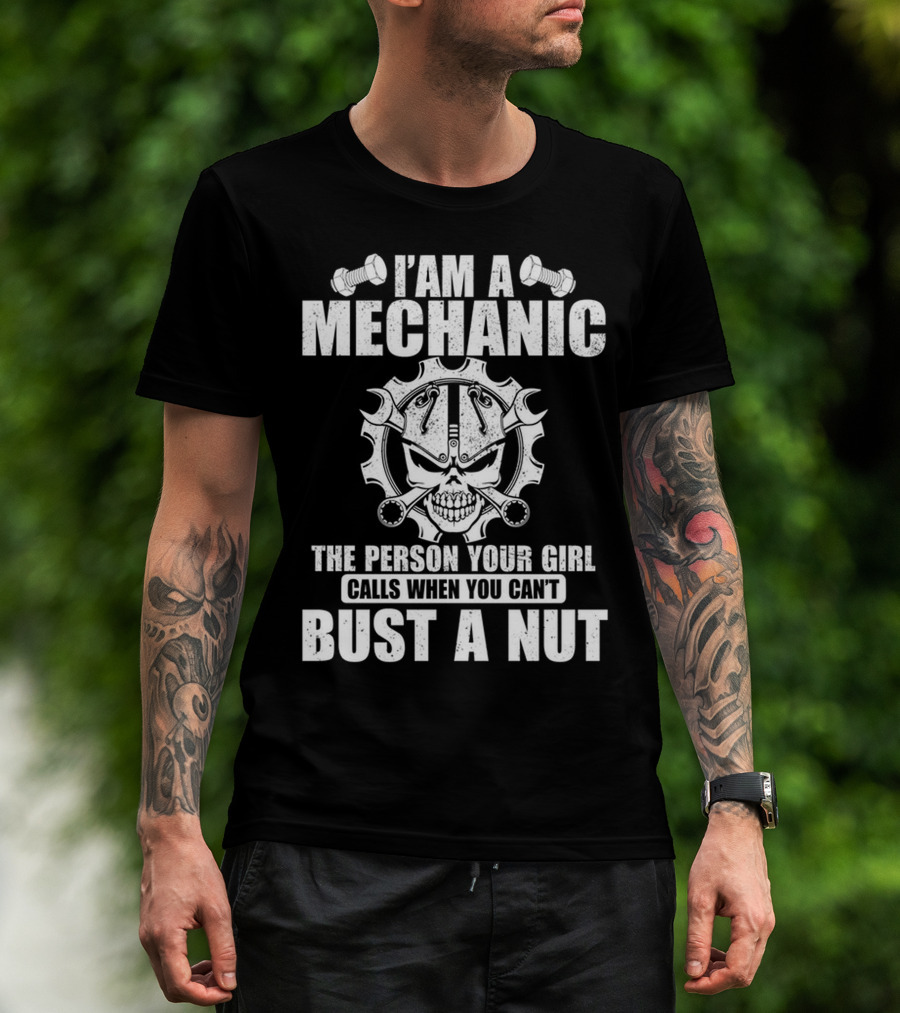 I AM A MECHANIC THE PERSON YOUR GIRL CALLS WHEN YOU CAN'T BUST A NUT T-Shirt