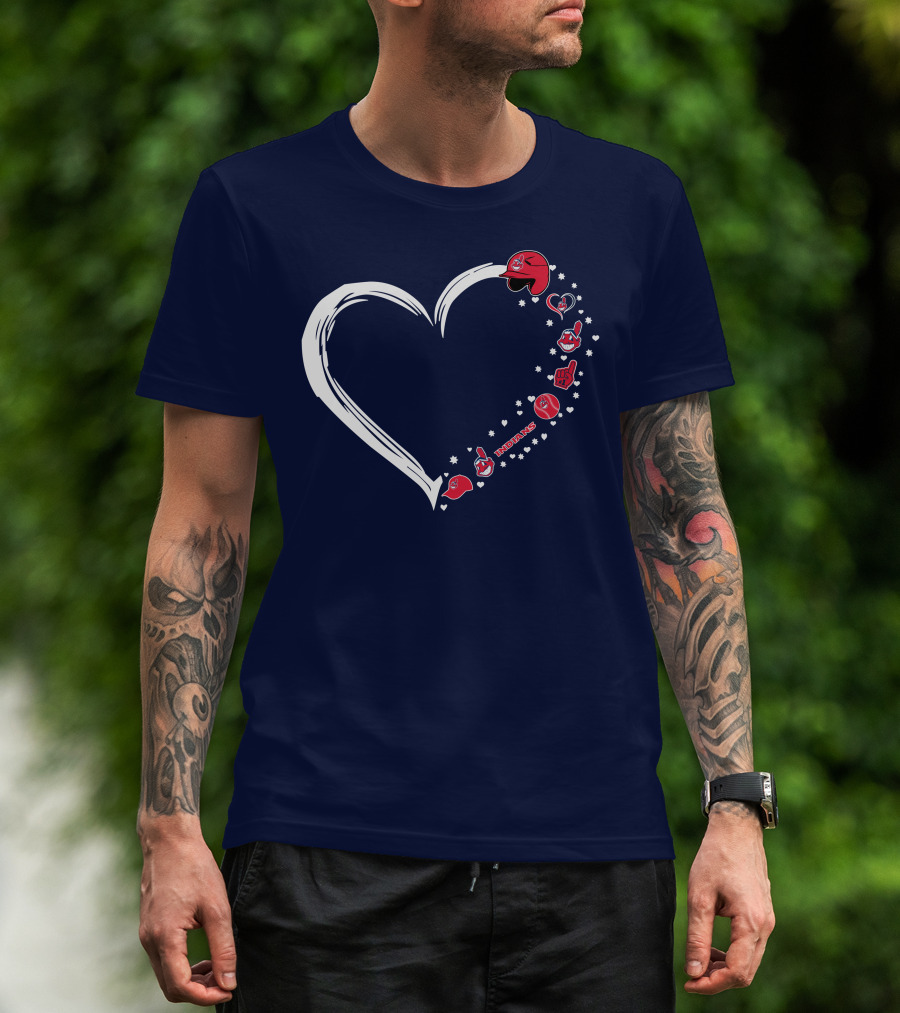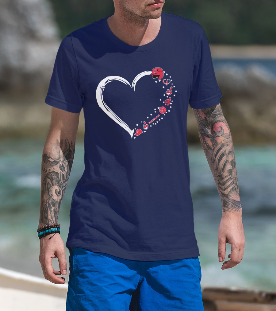 Cleveland Indians Fan Heart With Helmets And Stars T-Shirt