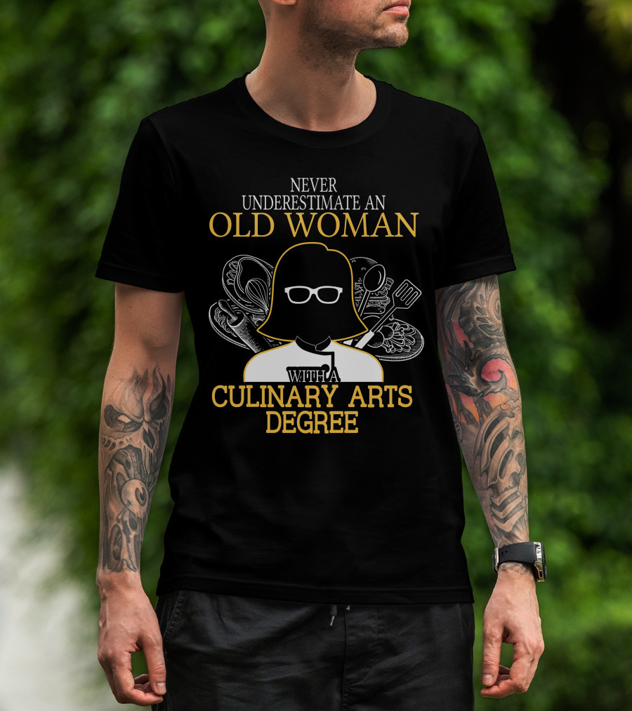Never Underestimate An Old Woman With A Culinary Arts Degree Cooking Tools T-Shirt