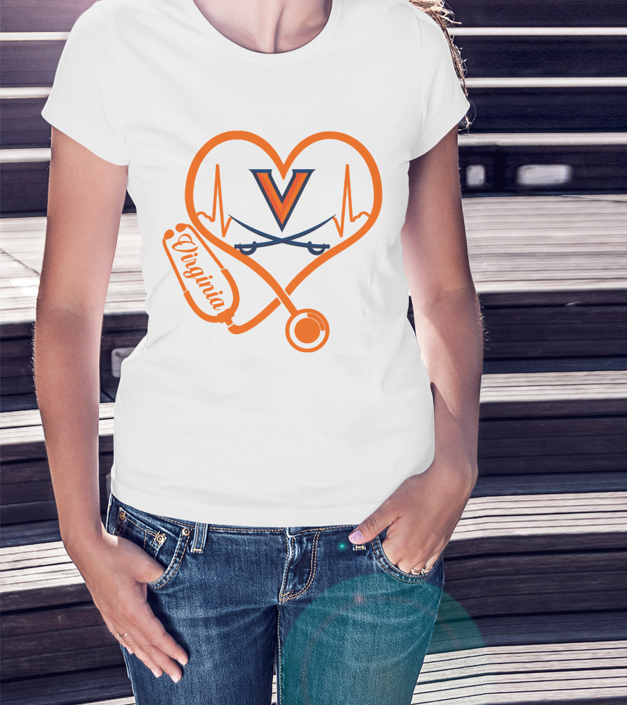 Nurse Love Virginia Cavaliers Stethoscope Heart T-Shirt