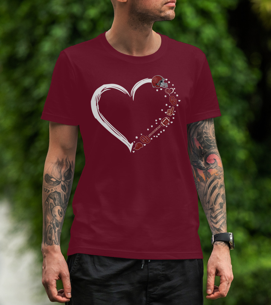 Oklahoma Sooners Heart Design With Helmets And Footballs T-Shirt