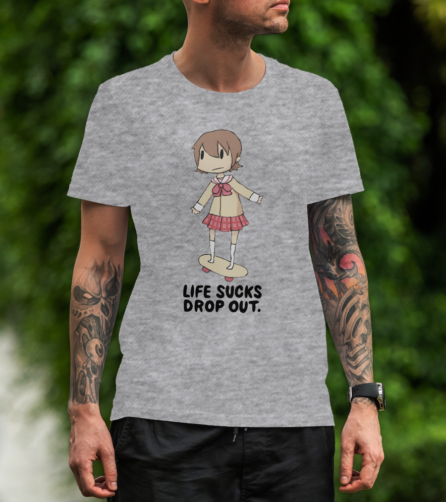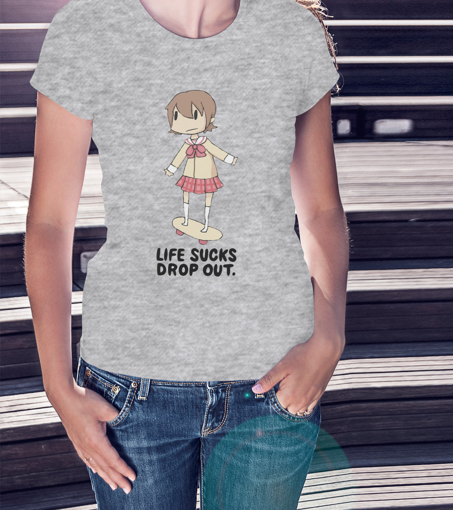 Life Sucks Drop Out Anime Style Character On Skateboard T-Shirt