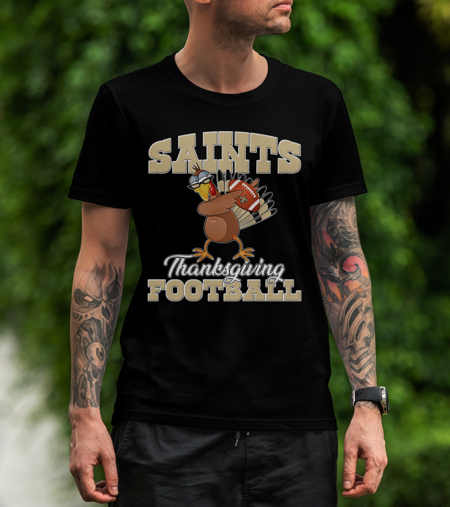 Saints Thanksgiving Football Turkey With New Orleans Saints Football T-Shirt