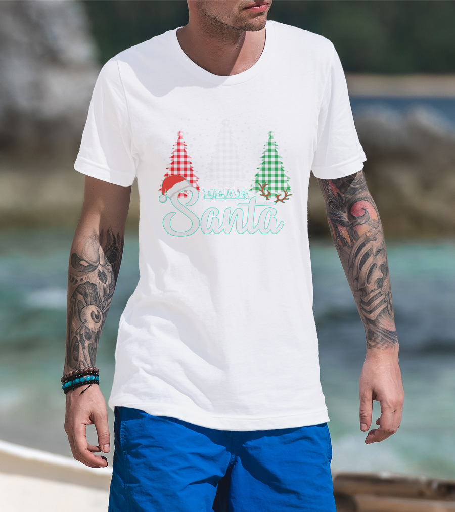 Dear Santa Christmas Trees Santa Hat Reindeer Antlers T-Shirt