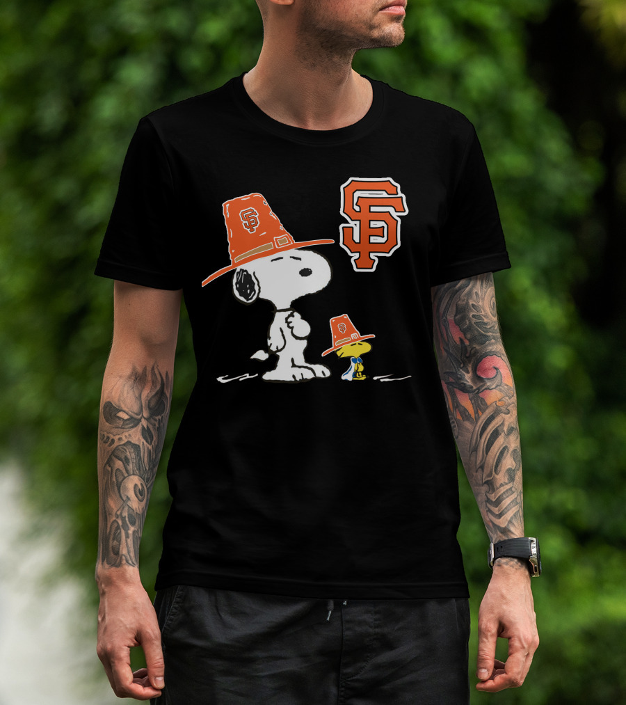 San Francisco Giants Snoopy Woodstock Thanksgiving Hat T-Shirt