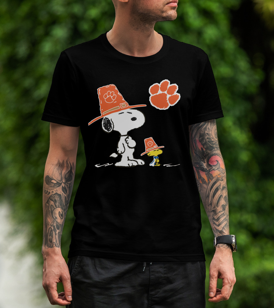 Clemson Tigers Snoopy And Woodstock Thanksgiving Hat Football Paw T-Shirt