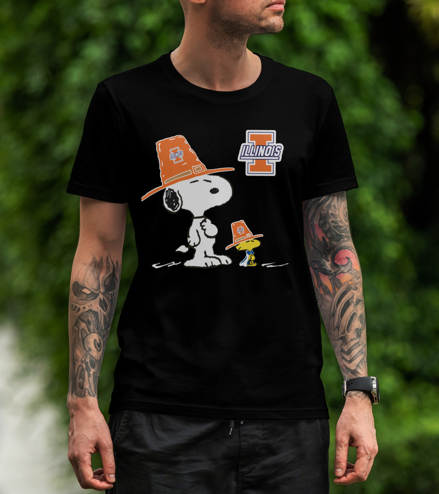 Illinois Fighting Illini Snoopy Woodstock Pilgrim Hats T-Shirt